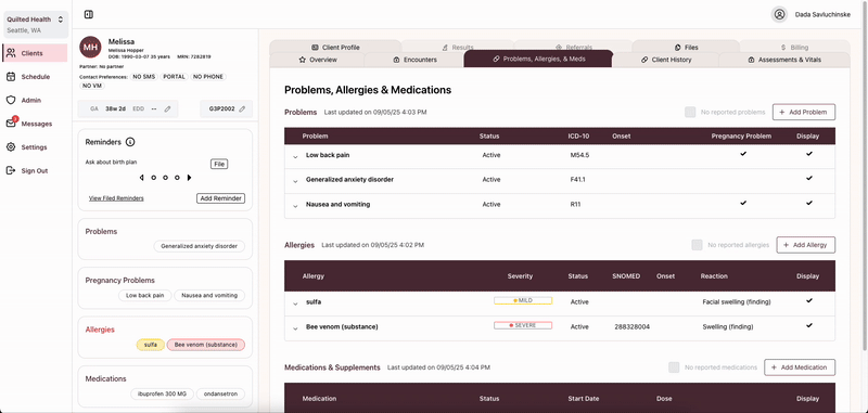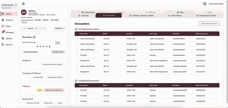 Quilted EHR is a modern and intuitive solution built to support midwives in meeting the unique needs of the communities and clients they serve.